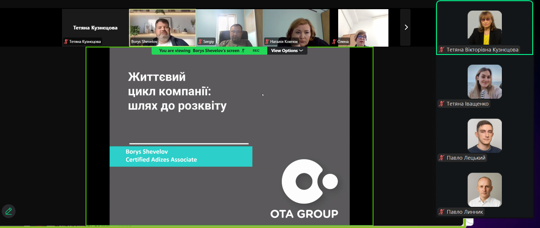 Майстер-клас провів Борис Шевельов, сертифікований Adizes Associate, який у доступній та водночас глибокій формі презентував концепцію життєвого циклу організацій. Він наголосив, що кожна стадія розвитку компанії потребує особливих управлінських рішень і гнучкої адаптації, а також звернув увагу на найбільш уразливі етапи – «Юність» і «Розквіт». Саме в цей час керівники часто впадають у крайнощі: від надмірної централізації до надмірного «розслаблення».