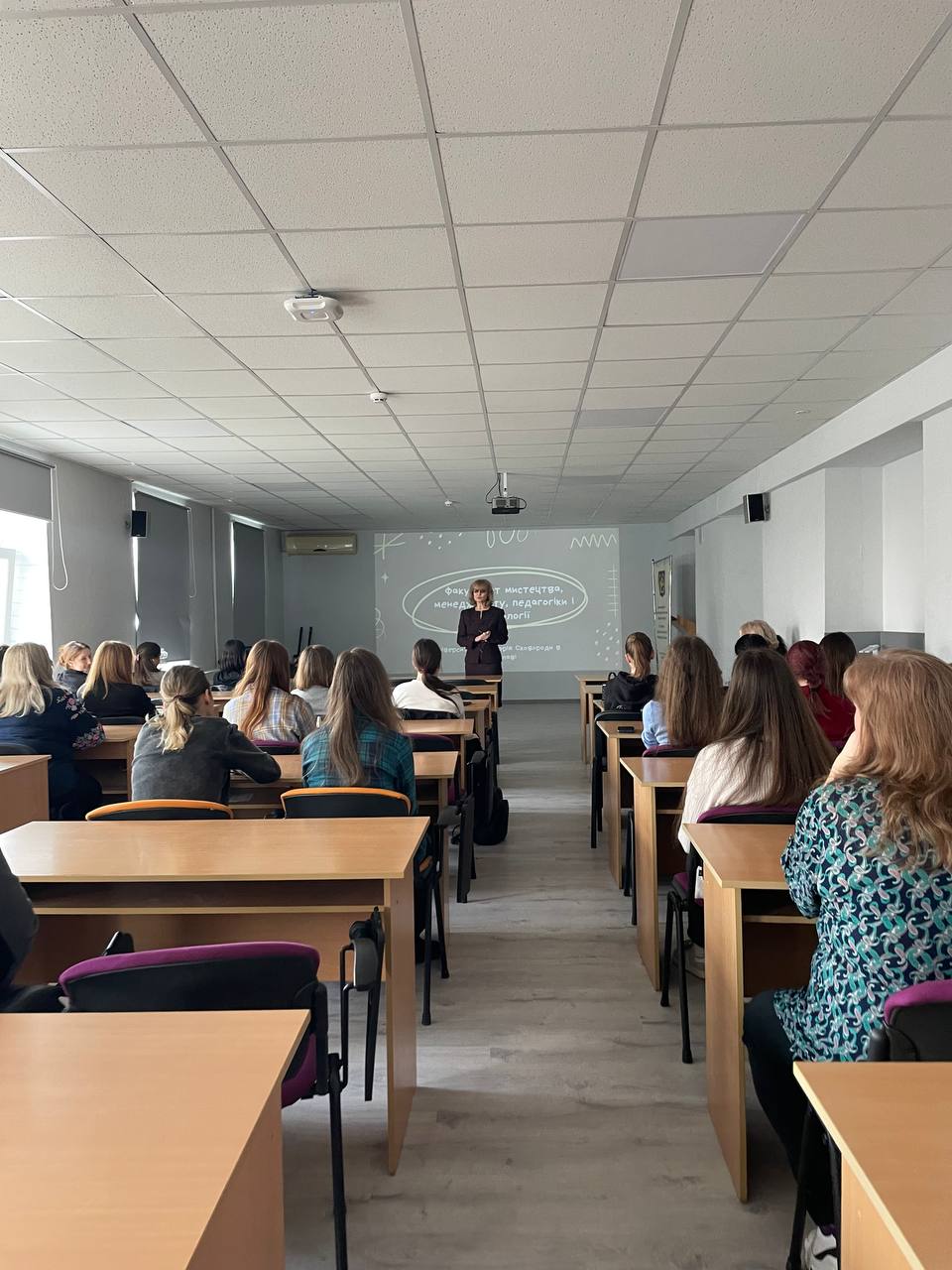 - Ліцеї «Ерудит» та «Успіх». Зустрічі з ліцеїстами пройшли під гаслом «Обирай українське – будуй власне!». Катерина Тригубчук поділилася драйвовим досвідом навчання, розповівши про можливості академічної мобільності та творчої самореалізації на ФММПП УГСП.