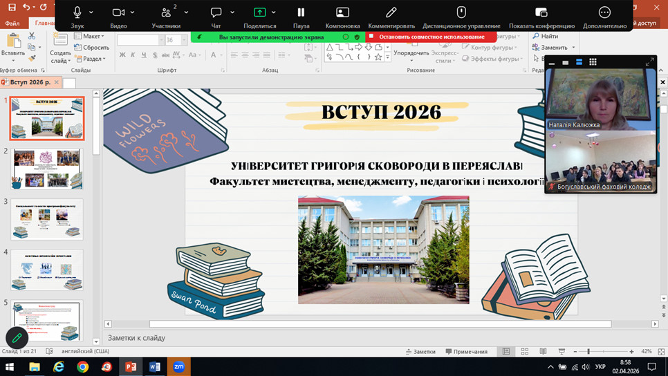 За ініціативи Людмили Красюк та Наталії Калюжки відбулася масштабна онлайн-зустріч із випускниками Богуславського гуманітарного фахового коледжу імені І.С. Нечуя-Левицького.