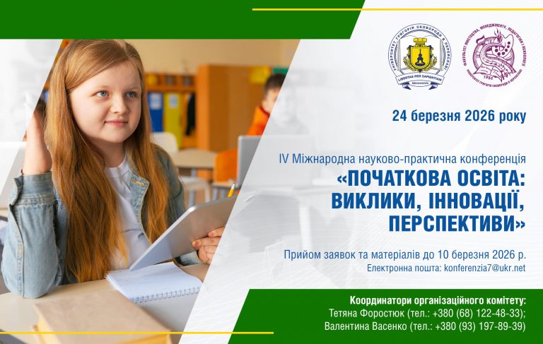 «Початкова освіта: виклики, інновації, перспективи»: 24 березня 2026 року відбудеться IV Міжнародна науково-практична конференція